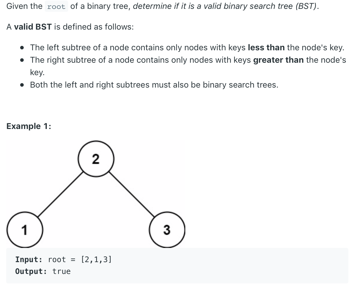 [LeetCode] 98. Validate Binary Search Tree 풀이 및 코드 본문
