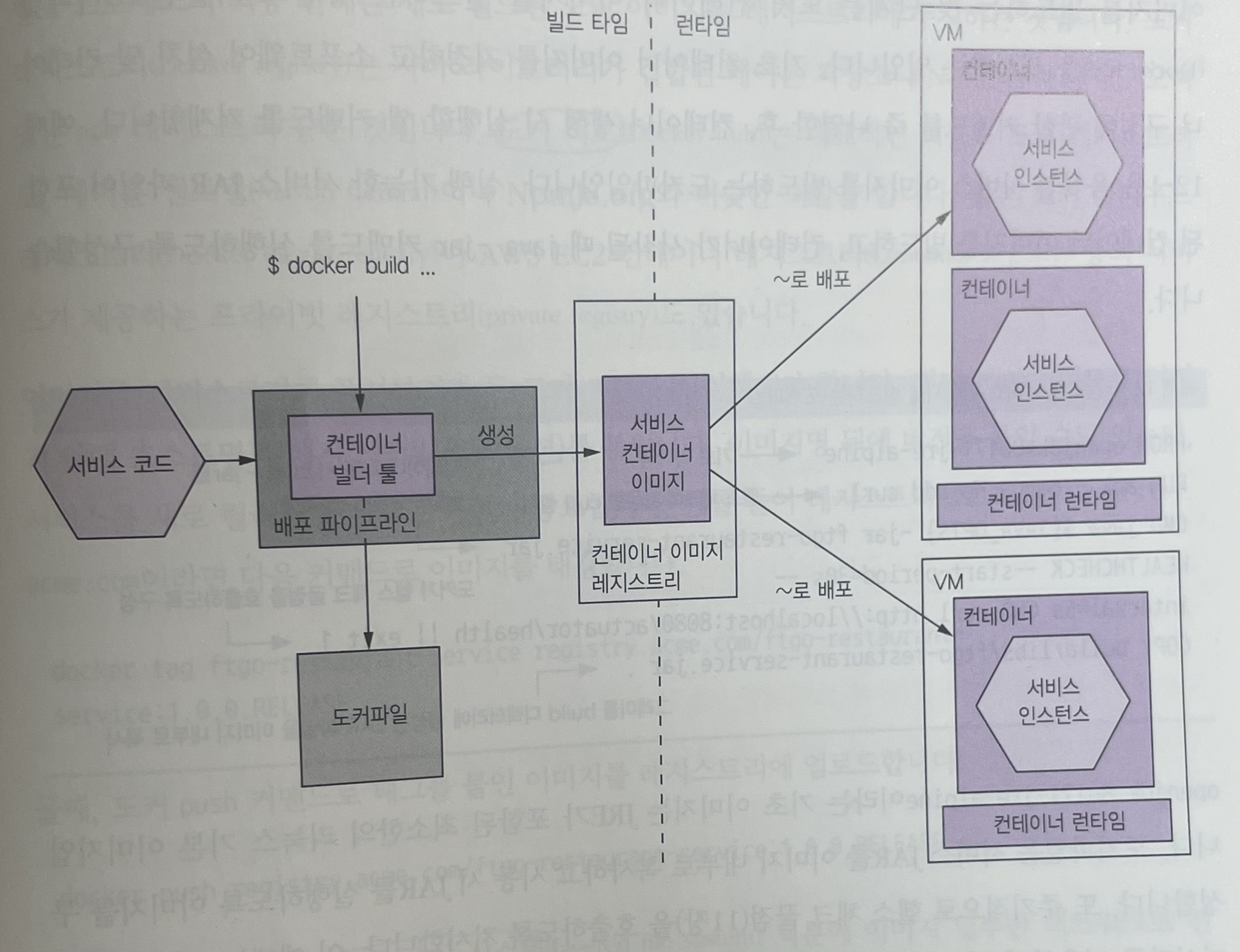 - 컨테이너 인프라가 이미지를 레지스트리에서 프로덕션 서버로 당겨 오고, 이 이미지로부터 컨테이너를 하나 이상 생성