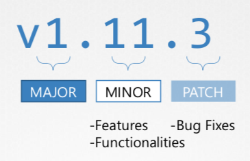 버전 체계는 Major-minor-patch임. 쿠버네티스는 3개의 버전을 Support함. (만약 v1.13이 나왔으면, v1.10부터는 지원이 안 됨.)