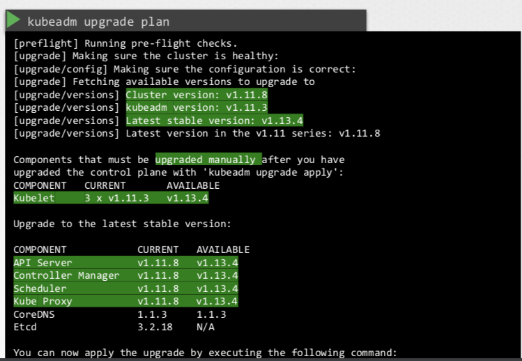실제로 업그레이드 할 때는 한 버전씩만 업그레이드 하는 것이 권장됨. v1.10에서 v1.13까지 한번에 업그레이드 하는게 아니라 v1.10 -> v1.11 -> v1.12 -> v1.13으로 업그레이드.