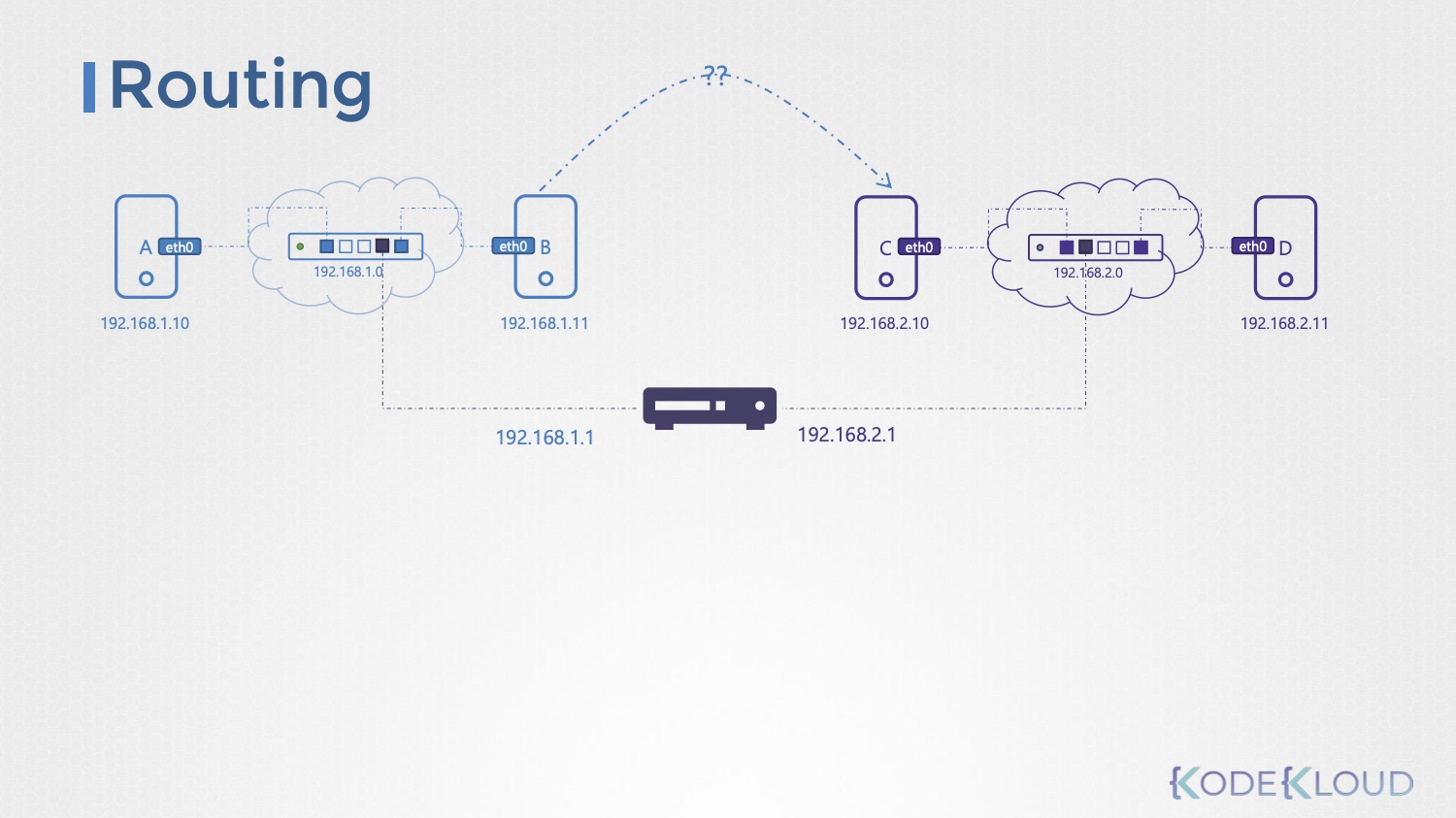 라우팅 테이블에 엔트리를 추가할 때는 ip route add 192.168.1.0/24 via 192.168.2.1로 하면 된다.