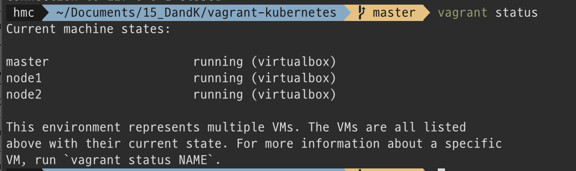 'vagrant ssh master'로 노드 내부에 접근할 수 있음